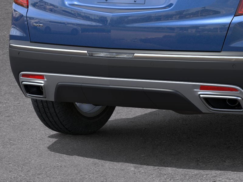 - Opens or closes when the system senses the key fob and the driver extends their foot under the left-hand side of the rear bumper over an image of the Cadillac Crest projected under the vehicle