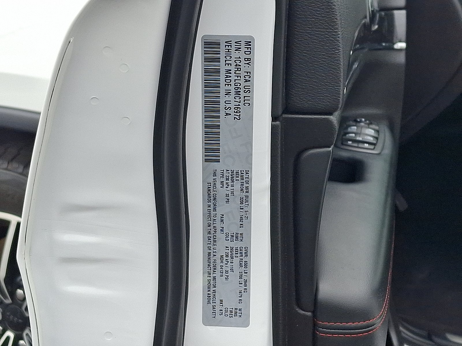 - Rear seatback upholstery: Carpet rear seatback upholstery